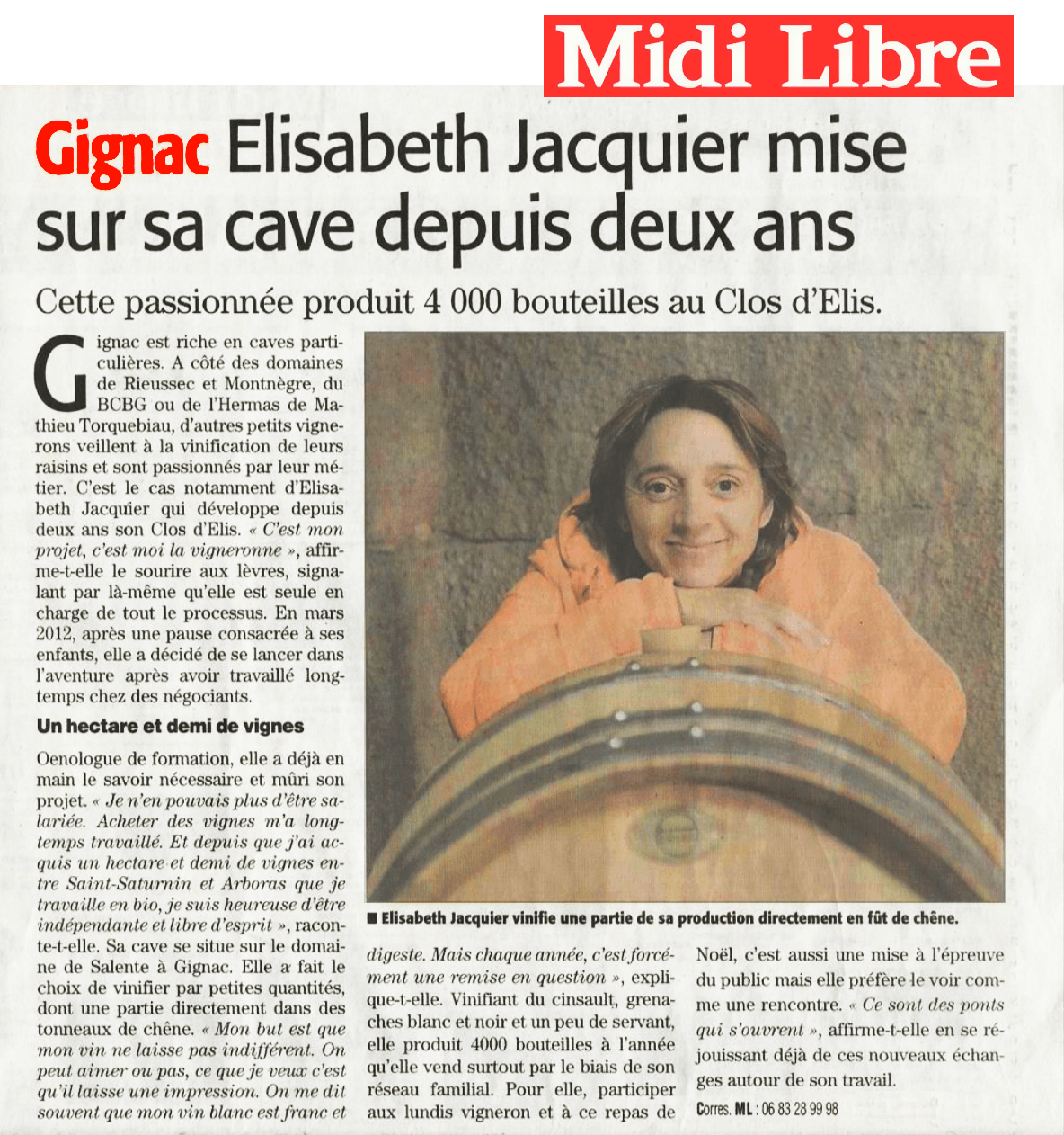 De 2012 à 2017, j’ai eu la chance de louer un chai chez Bénédicte TOURNAY au domaine de SALENTE (Gignac).