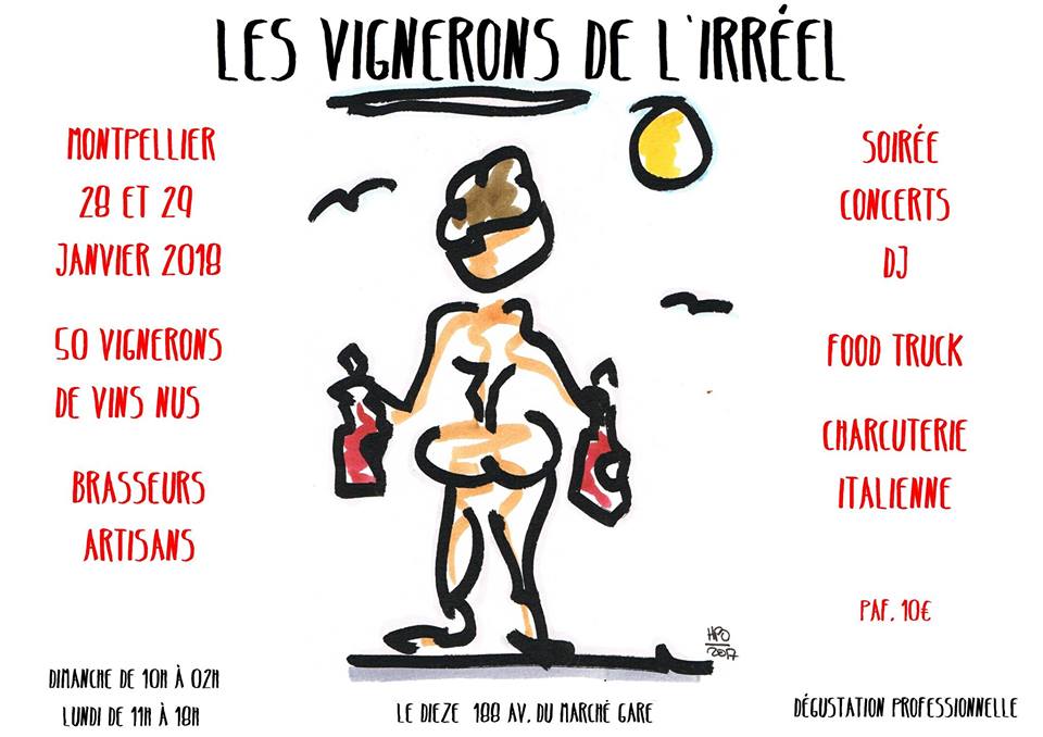 Le salon des vignerons de l’irréel – 28-29 janvier 2018 – MONTPELLIERPar Elisabeth Jacquier / 21 janvier 2018 50 vignerons de vins nus… avec Les Clos d’Elis