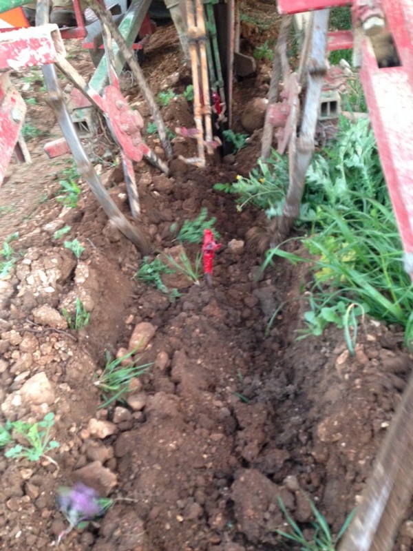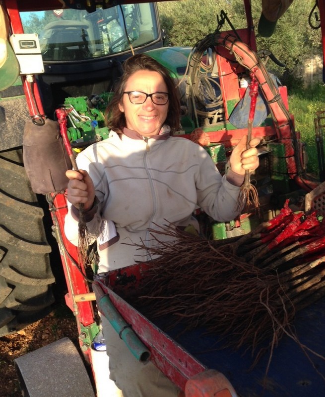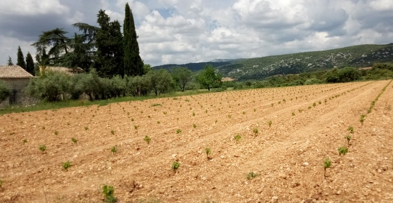 A l’aube, la parcelle de DEVES HAUT à ANIANE a accueilli les plants de grenache blanc et viognier. Le sillon est creusé, les pieds sont arrosés , placés tranquillement dans la terre, racines bien verticales et la terre se referme ensuite sur le pied…quelques semaines plus tard les premières feuilles apparaissent.